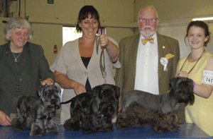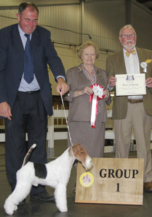 Judging for Best in Terrier Group Judge: Mr Alan Small BEST : 1437 MALZONI Mr V Ch Travella Striking SteelFOX TERRIER (WIRE)Dog RESERVE : 1442 CLARKE-O'NEILL Miss C Ch Lemracdream The NavigatorKERRY BLUE TERRIERDog 3rd : 1476 KNIGHT Mr C & Mrs G Westbank Blue Diamond For TalanorsMANCHESTER TERRIERDog 4th : 1657 DAVIES Mr M Ch Sebsonic Shinealight At Stormbull JWSTAFFORDSHIRE BULL TERRIERBitch Mr V Malzoni Ch Travella Striking Steel with group judge Mr A Small & Mrs A Hodsoll (Secretary)Miss C Clarke-O'Neill Ch Lemracdream The Navigator with group judge Mr A Small Mr C & Mrs G Knight Westbank Blue Diamond For Talanors with group judge Mr A SmallMr M Davies Ch Sebsonic Shinealight At Stormbull JW with group judge Mr A Small Terrier Breeder GroupJudge: Mr Alan Small 1st : Atter - Cesky Terrier 2nd : Sanson - Border Terrier 3rd : Not Awarded 4th : Not Awarded Atter - Cesky Terrier with breeder group judge Mr A Small