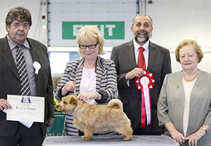 Miss D Jenkins Ch Kinsridge Top Tip with group judge Mr R Hunt, Mrs A Hodsoll (Secretary) & Mr A Bongiovanni (Royal Canin)