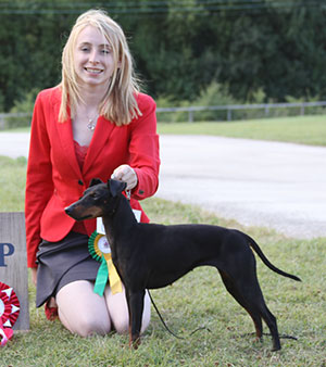 RESERVE : 1434 CAWLEY Miss B R Ch Marlablue In A Twirl Sh.CM MANCHESTER TERRIER Bitch