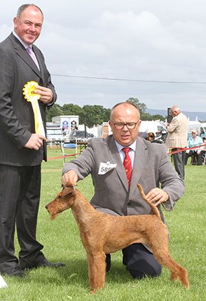 3rd : 5095 BARKER, Mr & Mrs A & J & AVERIS Mr J US Ch Irvonhill Leave It To Me IRISH TERRIER Bitch