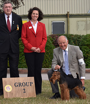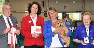 Mrs K Berry Ch Karamynd Star Player With Ashgate with group judge Mr S Watson & E Moorhouse (Royal Canin)