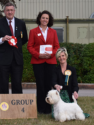 1st : 1379 GEE Mrs R Watercroft Calling Card - NORFOLK TERRIER - Dog 2nd : 1575 FOSTER, Mrs L M & FOSTER Miss N Thozow I'd Do Anything - WEST HIGHLAND WHITE TERRIER - Bitch 3rd : 1468 HOWES Mr S & Mrs B Daisymaes Tumbling Dice - SOFT-COATED WHEATEN TERRIER - Bitch 4th : 1612 THOMPSON-MORGAN Mrs C S Belleville Totally Smitten - AVNSC (Gundog & Terrier) - Bitch