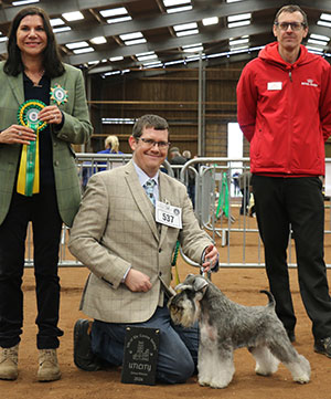 BEST : 537 PARKER, Miss L V & SAUNDERS, Miss T & MCDONALD, Mr - Risepark First Stage - MINIATURE SCHNAUZER - DogRESERVE : 444 BAKER, Mr & Mrs Martin & Jane - Smoochabull Cyrus The Viruss Into Pacolito - BULLDOG - Dog